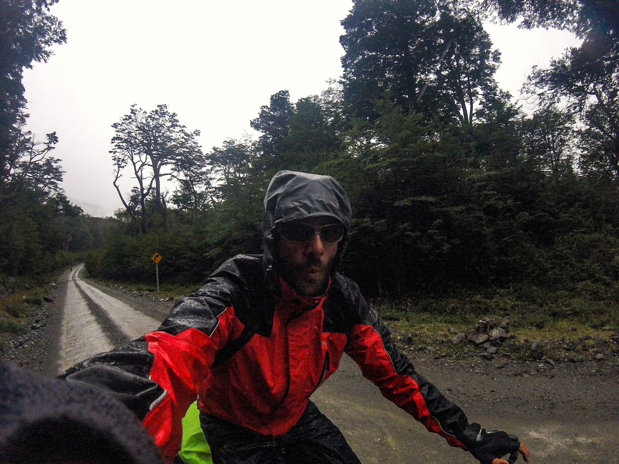 OK, der Kutter spuckt uns 3,5 Stunden später an Land, wir checken aus Chile aus und begeben uns auf einen zwölf Kilometer langen, teils sehr steilen, aber durchaus fahrbaren Pistenabschnitt, um nach Argentinien zu gelangen – im Rücken die Sonne, vor uns dunkle Wolken – ein Omen?! Klaro! 🙂